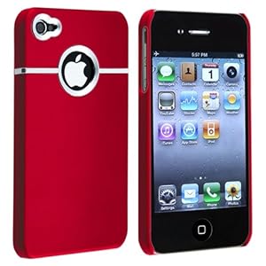 Snap-on Rubber Coated Case compatible with Apple? iPhone? 4 / 4S, Red with Chrome Hole Rear